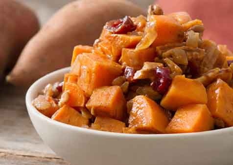 - Melt butter in large skillet. Add sweet potatoes and onion; stir-fry over high heat until potatoes are tender.