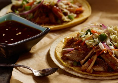 3. To serve: place 2 oz. heated pork into each corn tortilla. Top with 1 oz. coleslaw mixture and 1 tablespoon BBQ sauce.