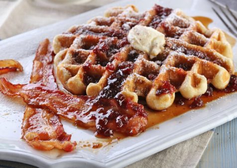 Maple-Bacon Waffle with Lingonberry Syrup & Orange-Pecan Butter