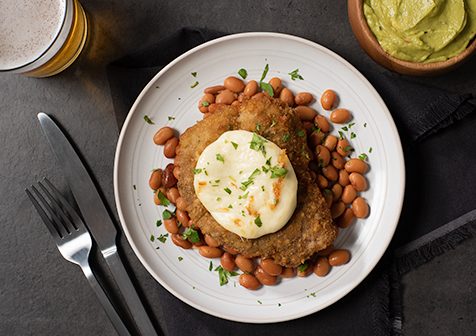 - Slice the Asadero cheese into normal thick slices and pan sear the cheese on both sides in a non-stick pan. Place the seared Asadero cheese on top of the golden brown medallions and serve with a side of guacamole and pinto beans.